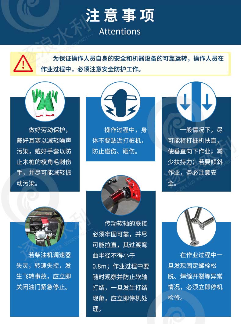 4、在操作過程中,有可能因振動引起木樁松動,應---轉(zhuǎn)動夾樁器的絲桿以壓緊木樁。